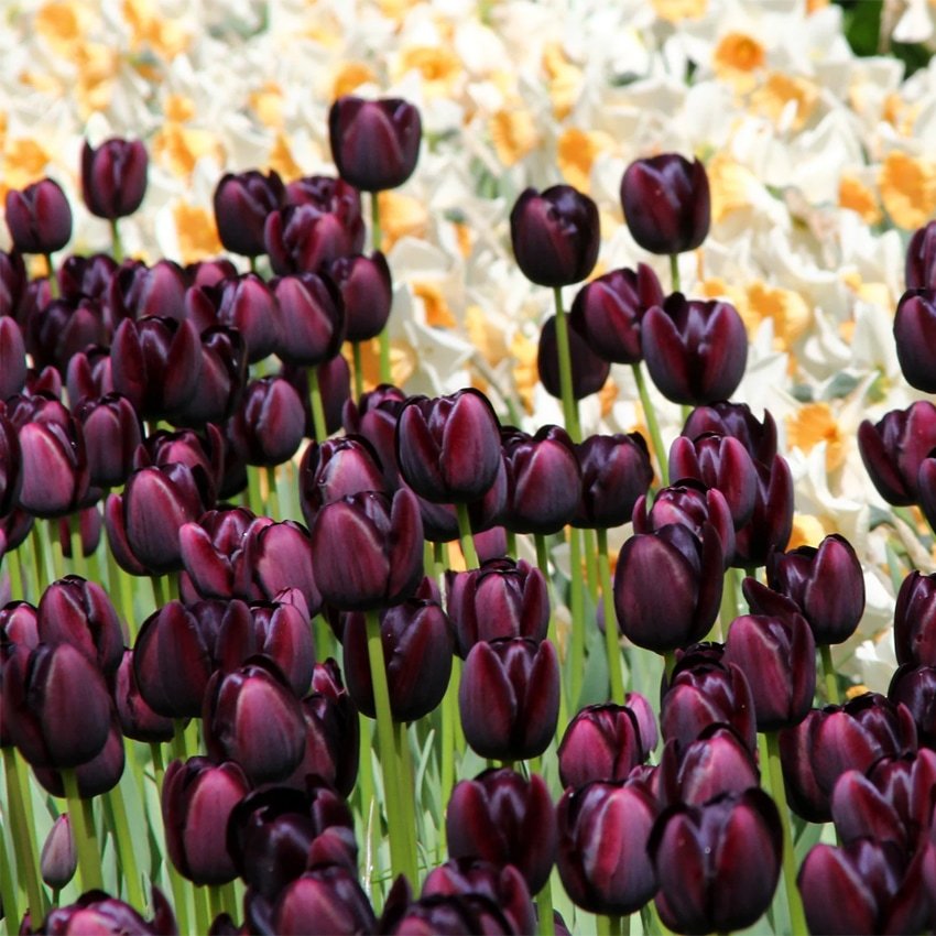 Queen of Night — морозостійкий і невибагливий сорт, який ідеально підходить для ранньої посадки. Цибулини чудово переживають холод в ґрунті, розквітають з першими теплими променями сонця. Тюльпани цього сорту можуть цвісти кількома хвилями, тішачи своєю глибиною кольору й шляхетним виглядом. Це вибір для тих, хто прагне додати саду нотку таємничості, розкоші й витонченості.